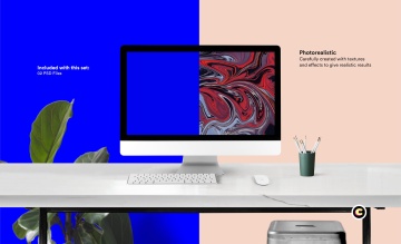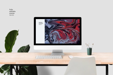 图穷联素材库 » 简约办公桌面一体机电脑屏幕演示样机模板 Desktop Mock-Up