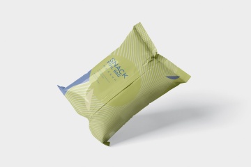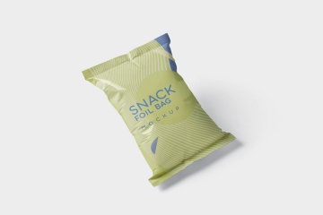 小吃零食铝箔袋塑料包装袋设计图样机 Snack Foil Bag Mockup