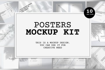 不同视角植物阴影背景海报设计效果图样机 Poster Mockup Kit