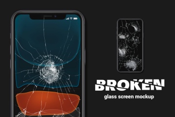 图穷联素材库 » 时尚高端逼真的手机屏幕破碎APP UI样机展示模型mockups