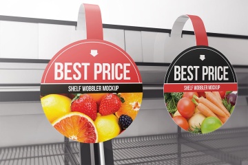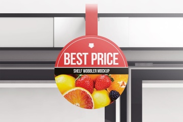 图穷联素材库 » 少见的超市圆形摇摆价签挂签设计VI样机展示模型mockups