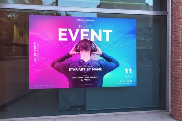 简约好用的橱窗玻璃海报设计VI样机展示模型mockups