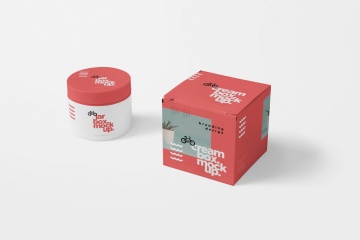 逼真智能华丽设计奶油罐化妆品包装品牌多视角样机盒