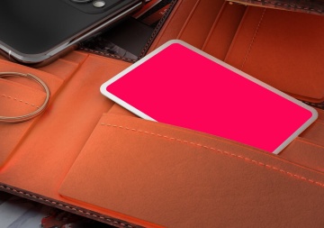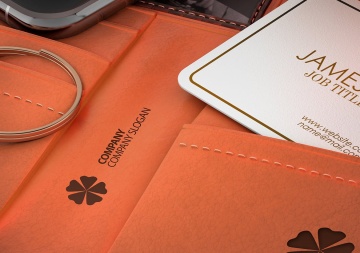 图穷联素材库 » 在皮夹钱包的名片设计展示样机素材下载