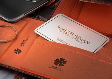 在皮夹钱包的名片设计展示样机素材下载