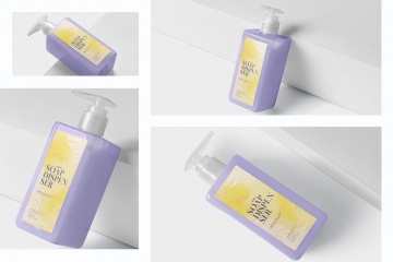 高品质的少见稀有洗手液沐浴露洗发露化妆品包装设计VI样机展示模型