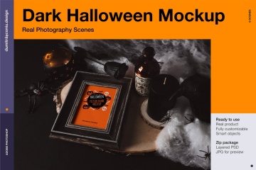 图穷联素材库 » 高品质的黑暗万圣节场景VI样机展示模型