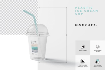 高级品牌个性化逼真智能VI透明塑料冰淇淋杯包装设计样机