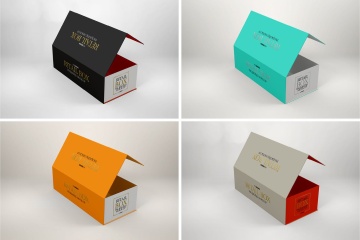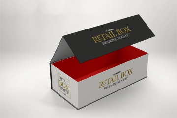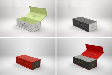 少见稀有的磁铁扣折叠包装盒子设计VI样机展示模型