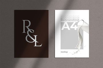 图穷联素材库 » 时尚高端逼真的带有阴影投影质感的高品质A4尺寸海报样机展示模型