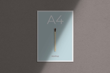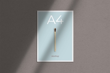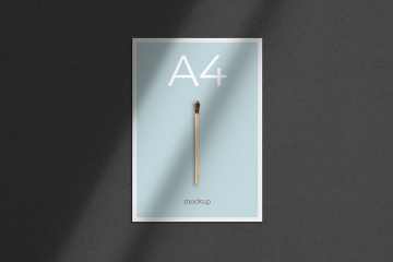 时尚高端逼真的带有阴影投影质感的高品质A4尺寸海报样机展示模型