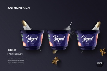 逼真质感的高品质时尚高端酸奶包装设计VI样机展示模型