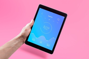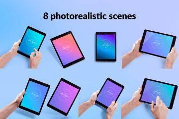 图穷联素材库 » 时尚高端逼真品质的多功能手持iPad平板电脑UI样机展示模型