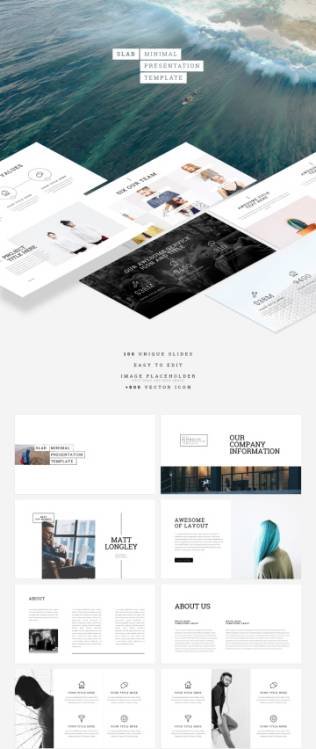 A powerful & creative slide presentation available for PowerPoint and Keynote. It comes with 100+ unique presentation slides with great professional layout and creative design. Slab makes it easy to change colors, modify shapes, texts, & charts, all shapes are editable. Includes a fabulous set of 800 vector icons and Apple device mockups.