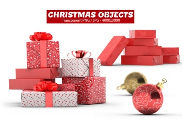 高品质的新年圣诞节礼物礼盒包装设计灯泡素材对象集合