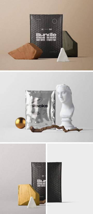 高级高清高分辨率高端逼真气泡和银箔包装产品场景