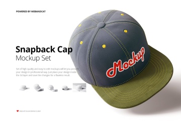 图穷联素材库 » 逼真质感的鸭舌帽棒球帽子设计VI样机展示模型