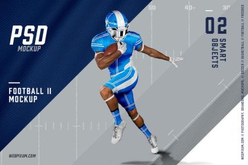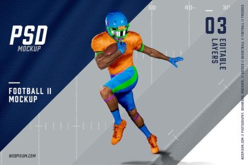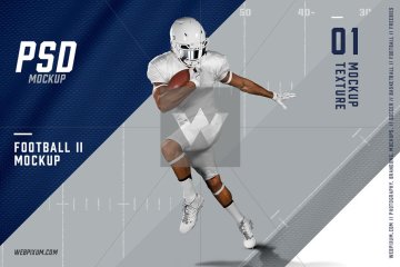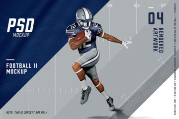 带球姿势的橄榄球(美式足球)套装设计展示样机下载