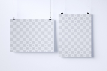 纵向悬挂海报设计效果图样机模板 Two hanging poster mockup