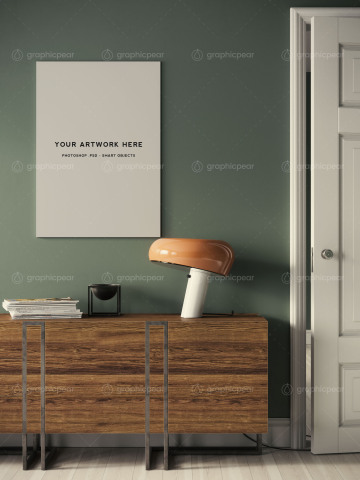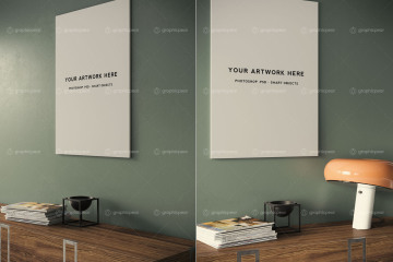 海报设计室内场景无框样机模板 Frameless A1 Poster Interior Scene Mockup