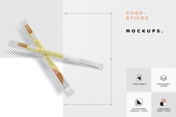 筷子透明包装设计效果图样机 Chopsticks Mockup in Transparent Packaging