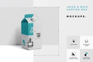 果汁牛奶饮料纸盒包装效果图样机 Juice – Milk Mockup in 500ml Carton Box