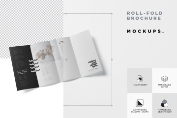 图穷联素材库 » 折叠设计风格企业传单宣传册设计样机 Roll-Fold Brochure Mockup