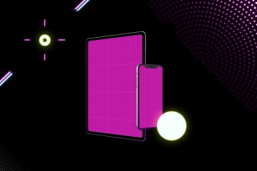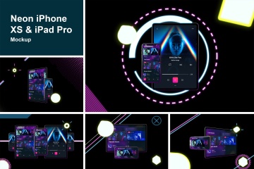 图穷联素材库 » 霓虹灯背景iPhone XS iPad Pro样机模板 Neon iPhone XS