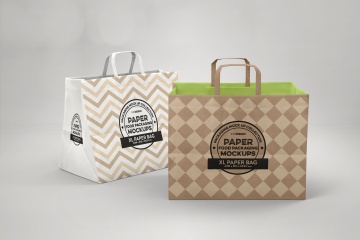 加大型购物纸袋设计图样机模板 XL Paper Bags with Flat Handles Mockup