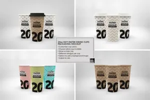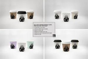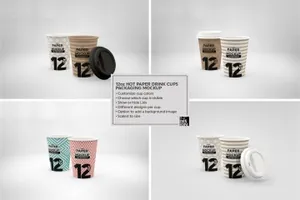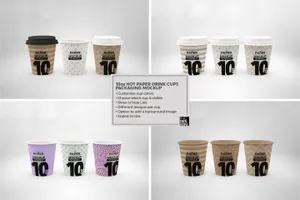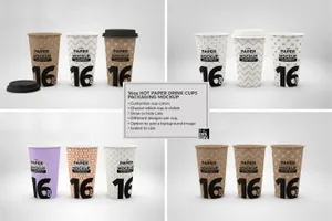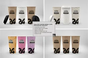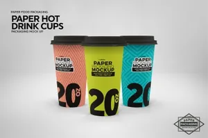 热饮一次性纸杯外观设计样机 Paper Hot Drink Cups Packaging Mockup