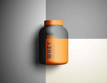 乳清蛋白蛋白粉塑料罐外观设计样机模板 Whey Protein Jar Mockup