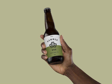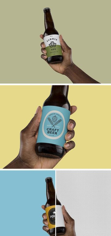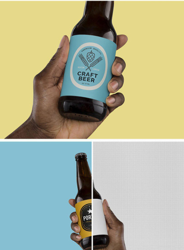 手持啤酒瓶酒类玻璃瓶瓶贴标签展示效果图VI智能贴图
