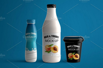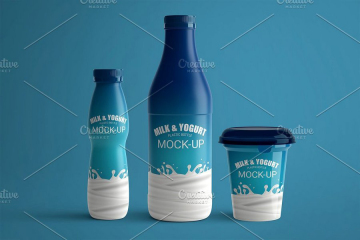 牛奶瓶玻璃瓶乳品杯装酸奶饮料食品包装瓶展示效果图
