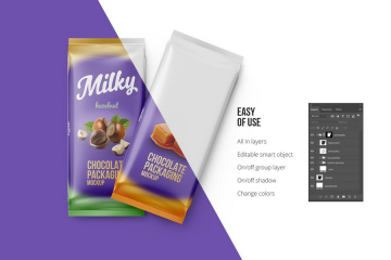 长方形巧克力糖果零食塑料袋食品包装袋展示效果图