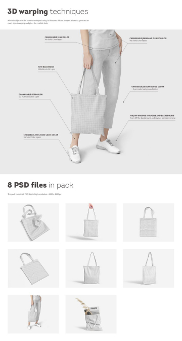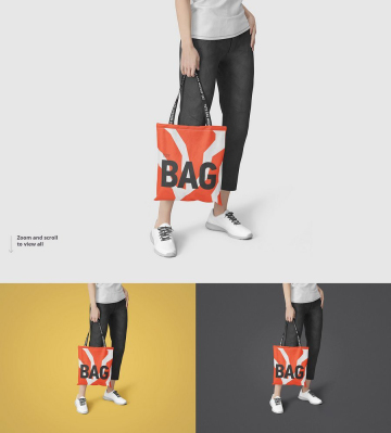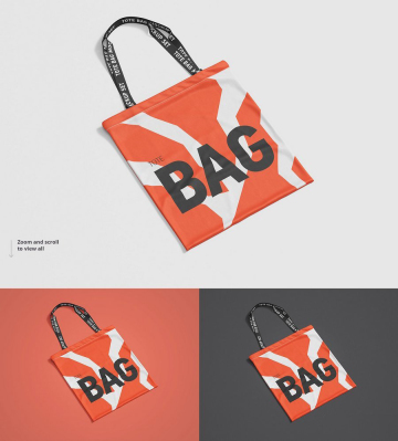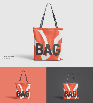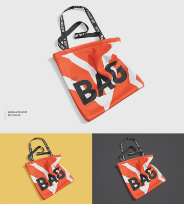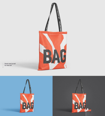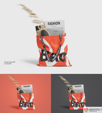 图穷联素材库 » 帆布袋手机袋购物袋拎袋包装展示效果图VI智能贴图PS样机素材