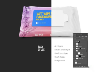 袋装湿纸巾塑料袋湿巾包装展示效果图VI智能贴图PS样机素材
