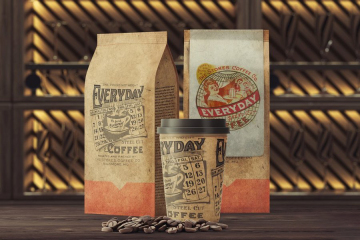 餐厅餐饮咖啡厅品牌形象咖啡豆包装袋纸杯展示效果图VI智能贴图