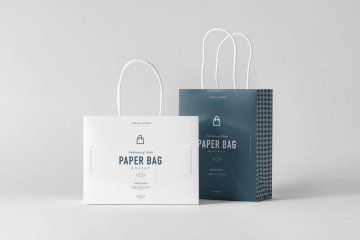 图穷联素材库 » 纸质手提袋购物袋纸袋礼品包装袋企业品牌形象立体展示效果图VI智能贴图