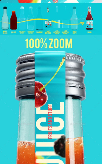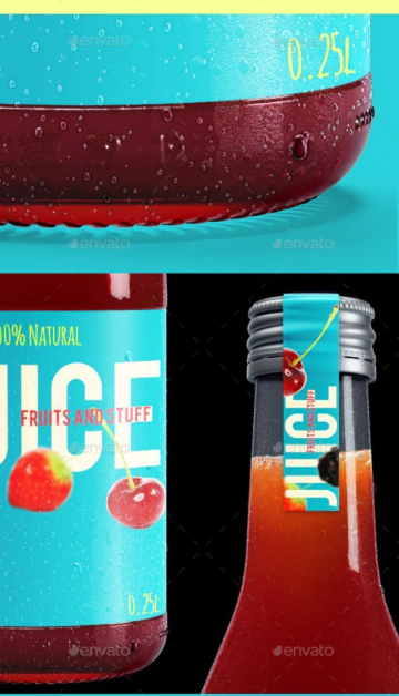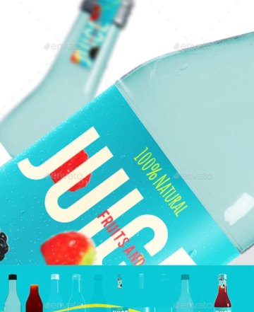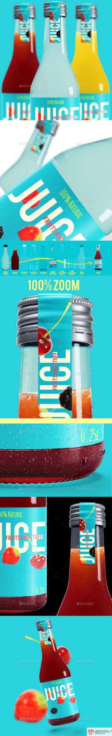 鸡尾酒果汁瓶装饮料玻璃瓶瓶贴标签食品冷饮包装展示效果图