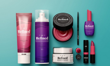 女士化妆品护肤品喷雾瓶口红软管包装俯视图场景展示效果图VI智能贴图