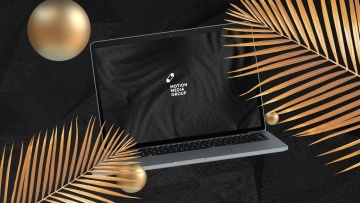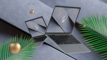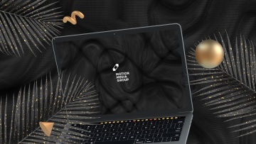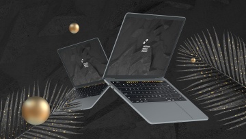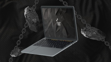 图穷联素材库 » 深色的3D酷炫背景的笔记本电脑样机素材下载