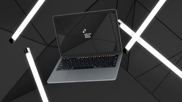 深色的3D酷炫背景的笔记本电脑样机素材下载