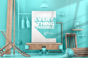 图穷联素材库 » 画布艺术墙框单色场景模型