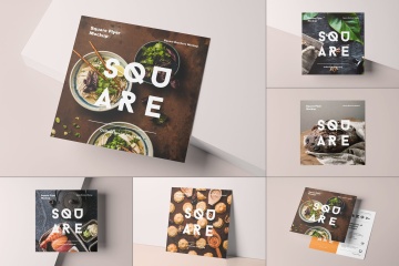 图穷联素材库 » 时尚高端方形宣传单DM海报设计VI样机展示mockups