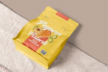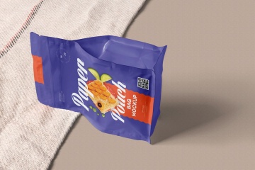 时尚高端逼真质感密封食品包装袋设计VI样机展示模型
