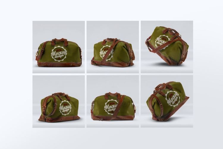 图穷联素材库 » 高品质的逼真质感旅行袋背包书包设计VI样机展示模型