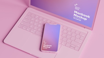 图穷联素材库 » 粉色IPhone和MacBook抽象样机下载(PSD)