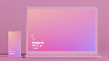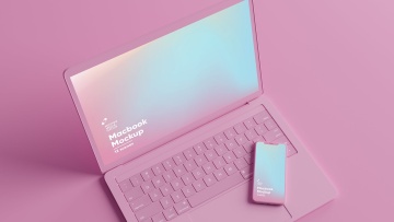 粉色IPhone和MacBook抽象样机下载(PSD)