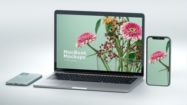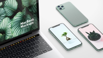 图穷联素材库 » Iphone和MacBook透视角度响应式网页样机(PSD)