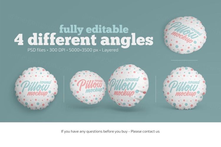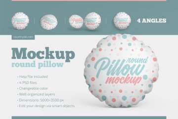 图穷联素材库 » 圆形枕头抱枕标签图案设计样机